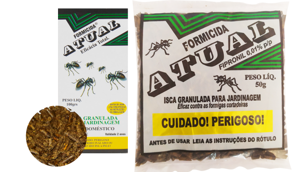 Indicação: A Isca Granulada para Jardinagem Amadora ATUAL é um produto elaborado com Fipronil, um eficiente princípio ativo que elimina as formigas cortadeiras em jardins amadores.